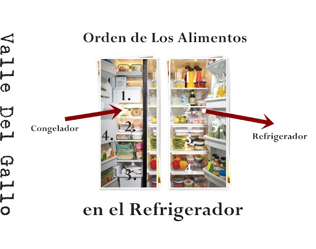 Para que tus alimentos se conserven de la mejor forma, es importante conocer, cual es lugar que le corresponde a cada uno dentro del Congelador o Refrigerador, para esto esta el grafico, abajo que explica muy bien, en que orden se deben mantener, para evitar que se estropeen.